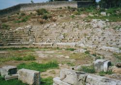 Die Reste des mykenischen Palastes ("Schatzhaus des Minyas") und des einst bedeutenden Tempels der Chariten hat man in dem Bereich zwischen Kirche und Theater gefunden, aber wieder zugeschüttet.