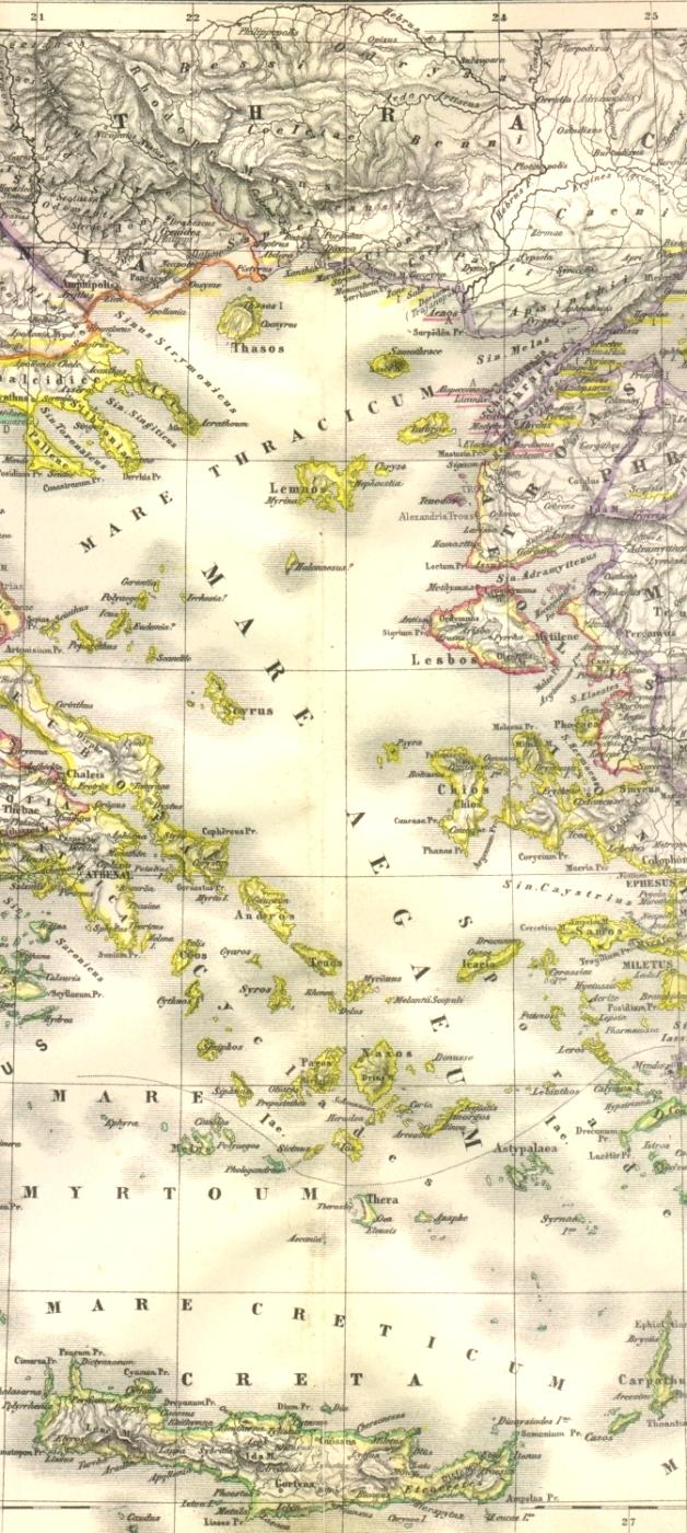 Achaia Phthiotis Attica Nordbalkan Boeotia Thrakischer Chersones Euboea Creta Cyclades Thracia Aeolia Troas Macedonia Phrygia Mysia Ionia Doria Argolis Griechenlandkarte (mittleres Drittel)