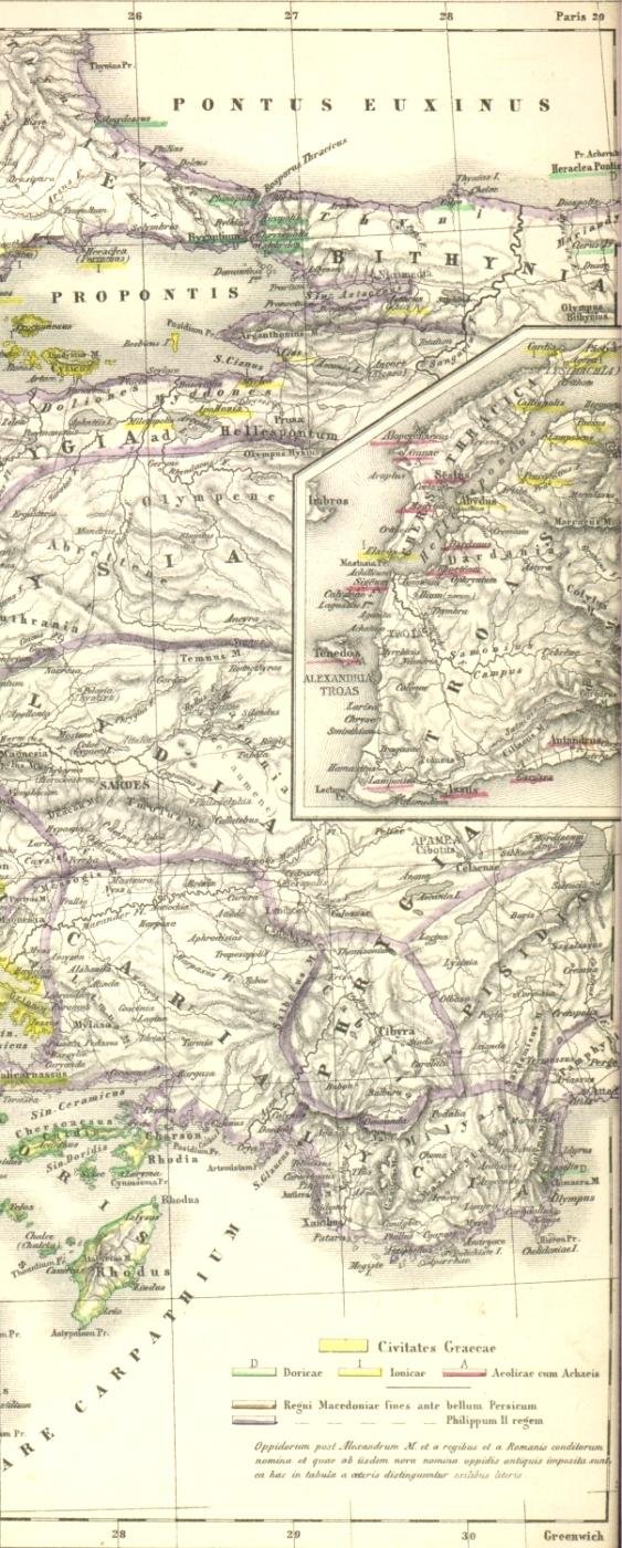 Thracia Troas Bithynia Ionia Caria Lydia Phrygia Mysia Phrygia Pisidia Lycia Pamphylia DoriaGriechenlandkarte oestliches Drittel)
